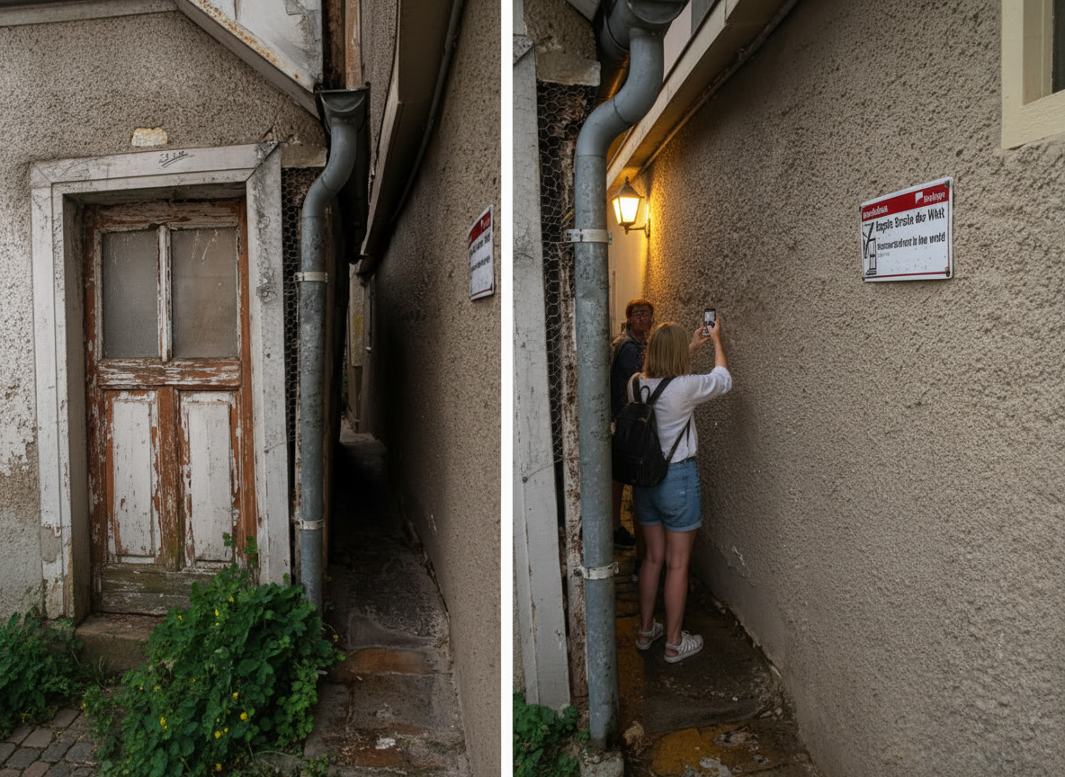 The catch? One neighboring building has structural issues, creating obstructions that require visitors to crouch. City authorities face a dilemma—repairs that make the building safer would widen the alley and void the world record.